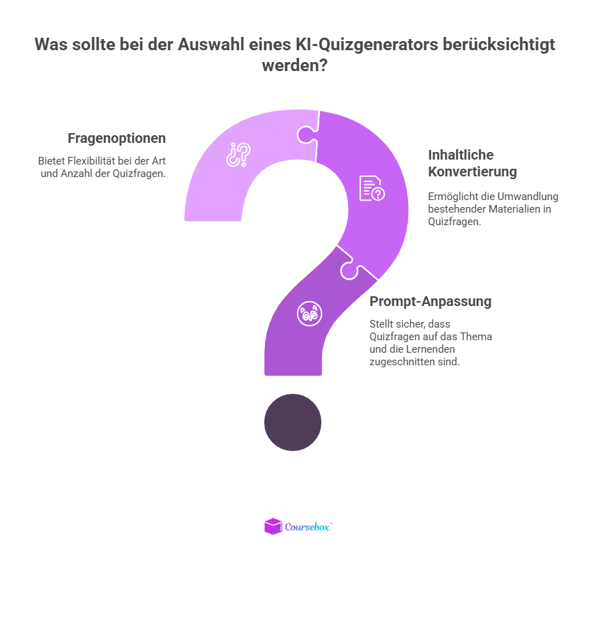 Ein guter KI Quizgenerator erstellt automatisch passende Fragen, passt sich der Leistungsfähigkeit der Nutzer an, bietet Feedbackfunktionen und zeigt Auswertungen, um Schwächen aufzudecken.