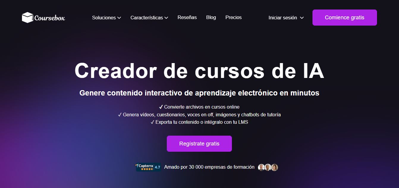 Si quieres una solución que combine generación automática de cursos, evaluación, rutas personalizadas, multimedia y seguimiento de aprendizajes, Coursebox es ideal.