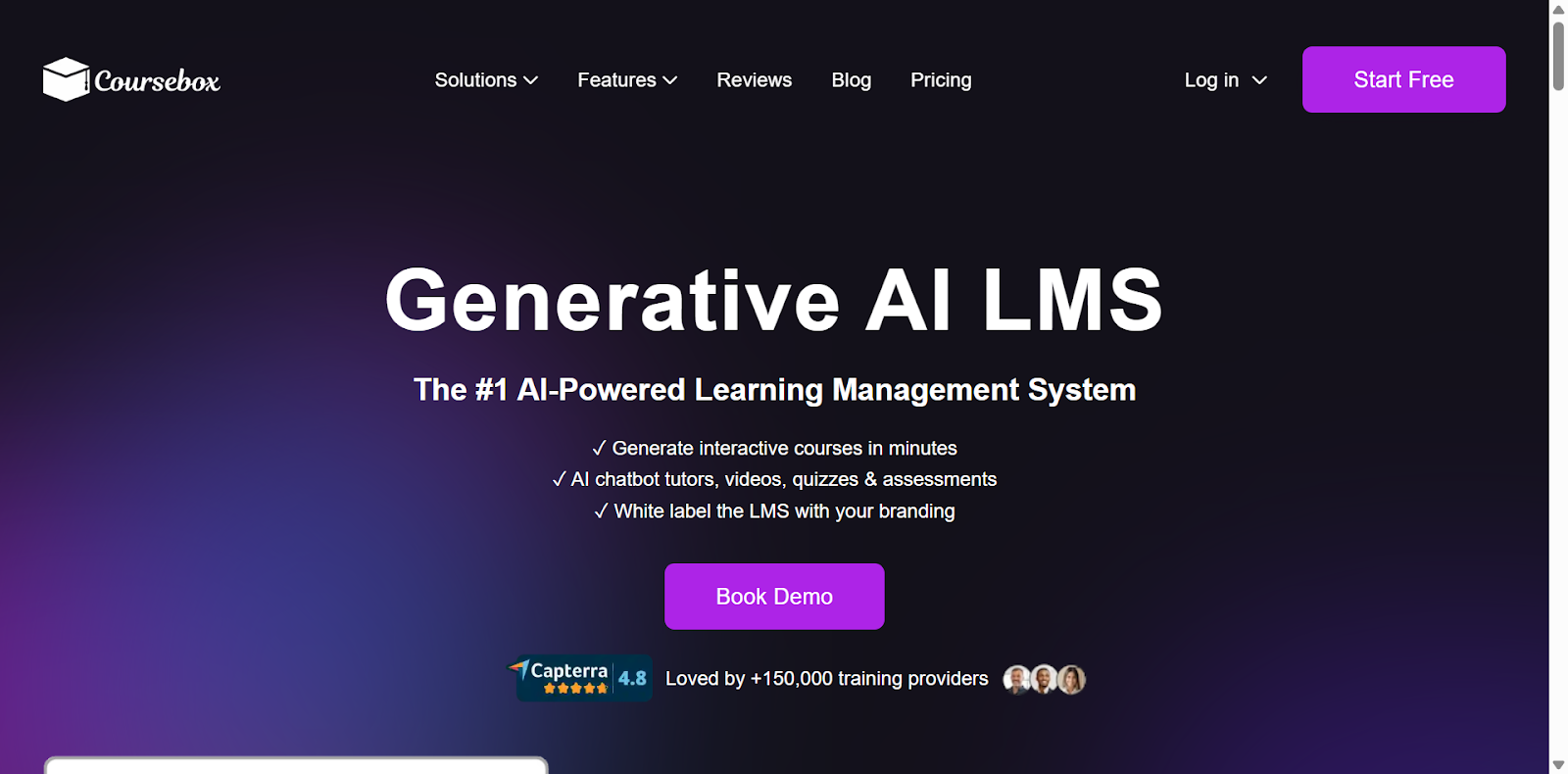 No entanto, se você está se perguntando qual LMS seria melhor para isso, sugerimos usar LMS de IA do Coursebox. Ele permite que você crie vídeos de treinamento em minutos e também oferece chatbots de IA para responder a qualquer dúvida em tempo real.